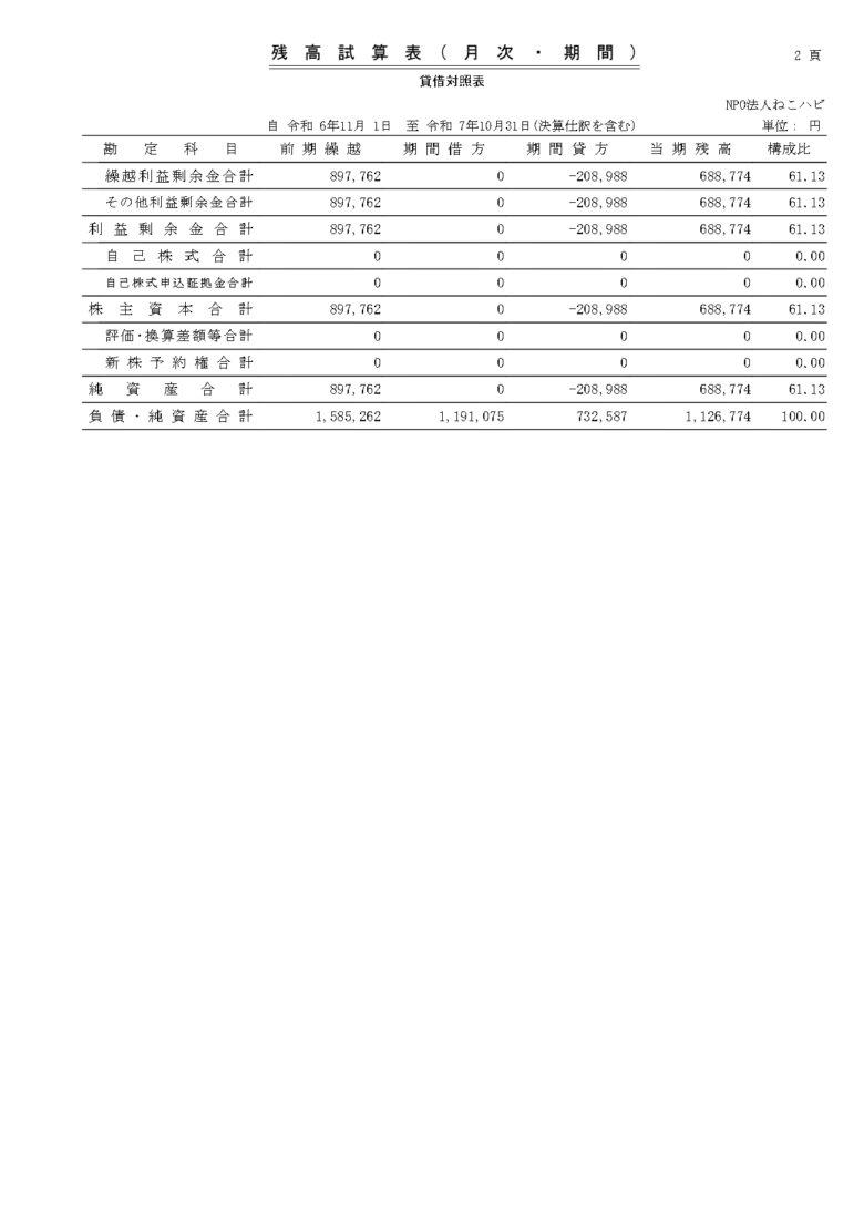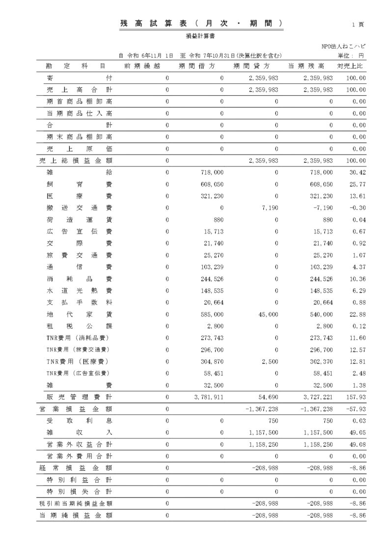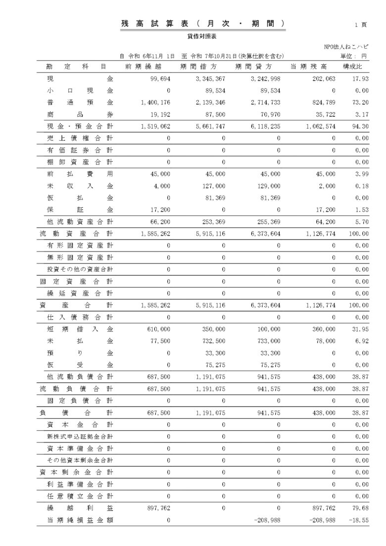 会計報告(決算・2025年10月)