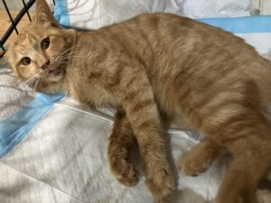 右後脚を骨折、食事をたべない、下痢の状態でした。