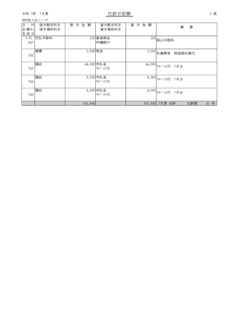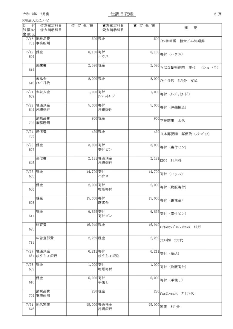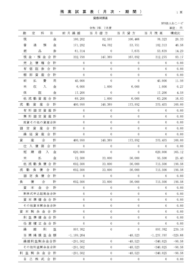 会計報告(2025年 7月)
