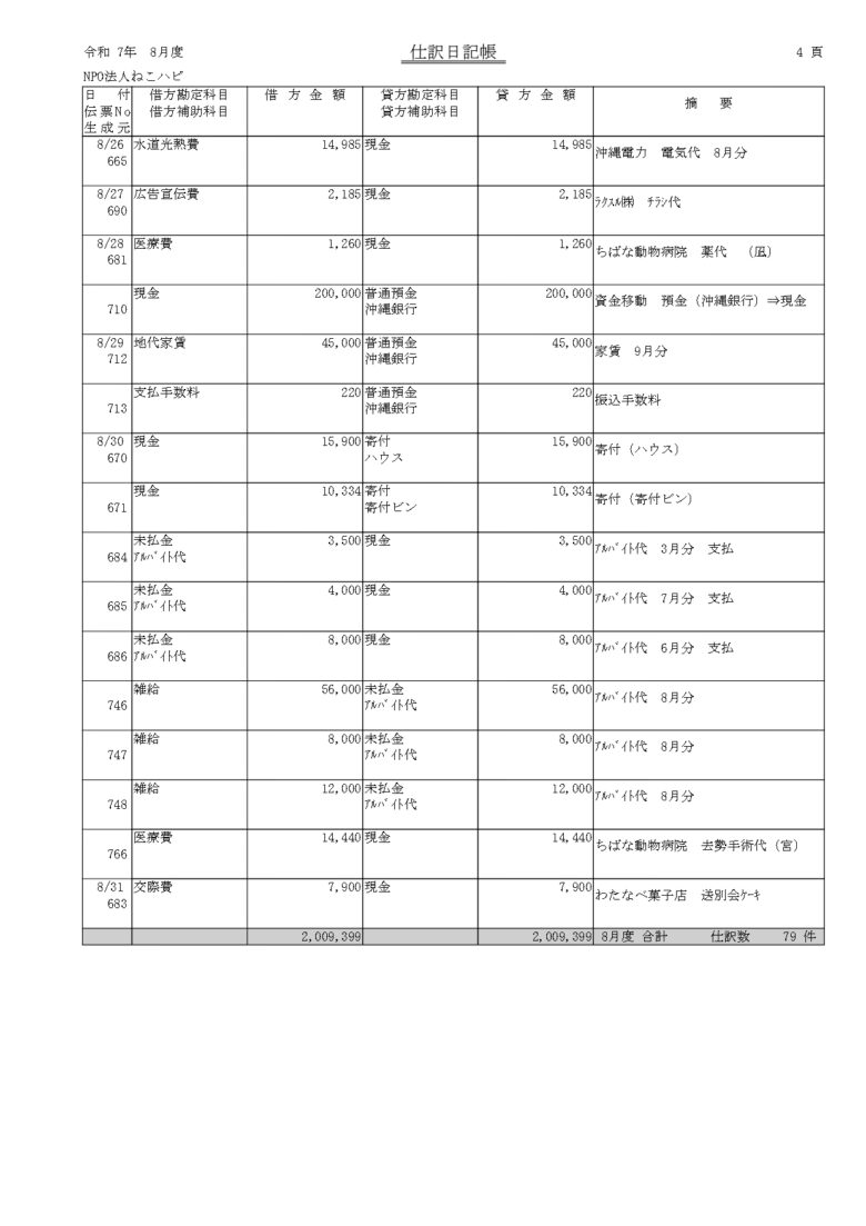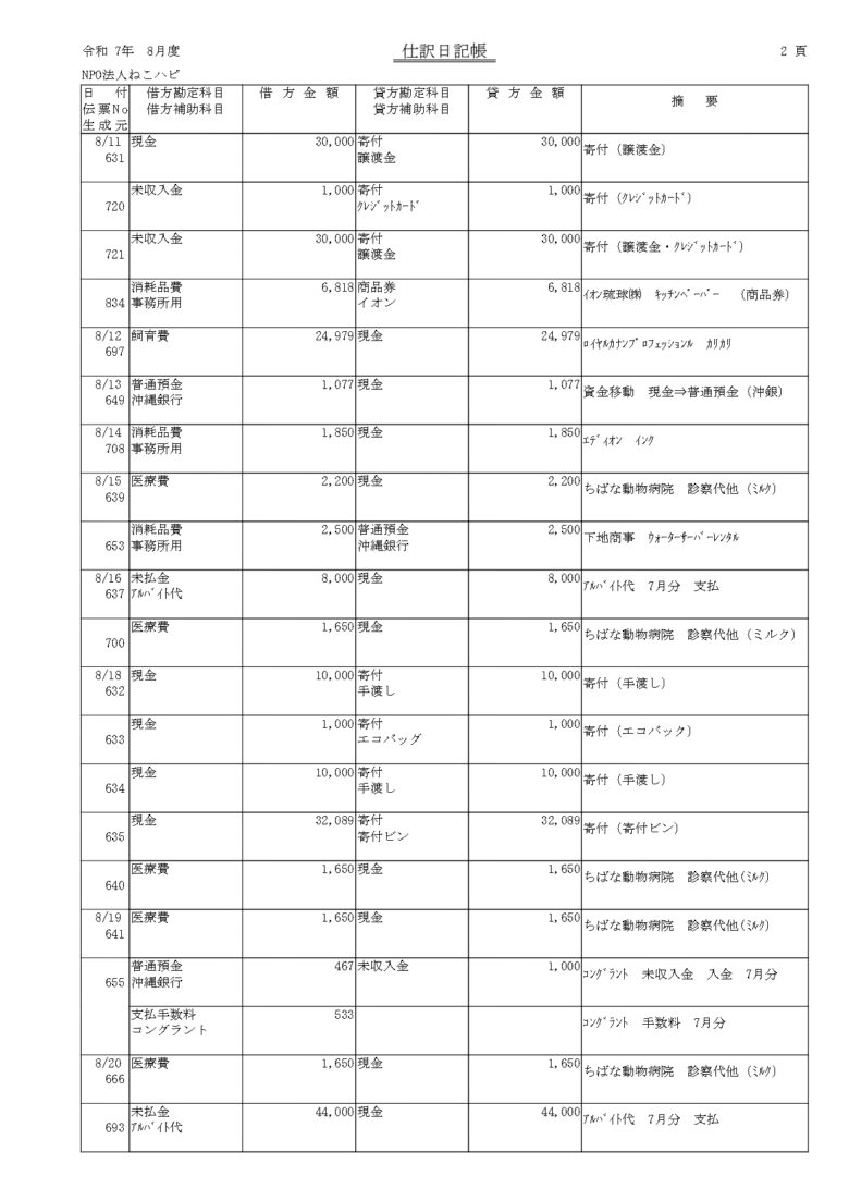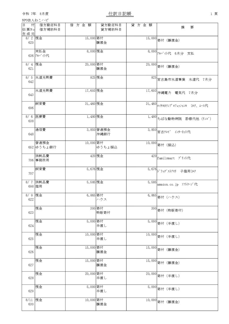 会計報告(2025年 8月)